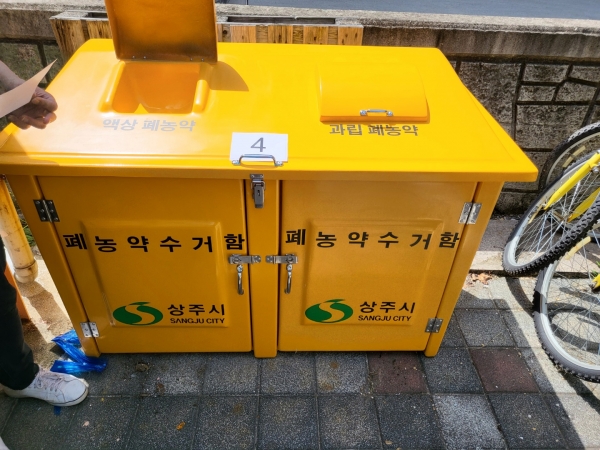 농가에서 폐농약이 유출되지 않도록 각 읍·면·동 행정복지센터에 설치된 폐농약 수거함에 배출하면 폐농약 전문처리업체를 통해 적정하게 처리된다.