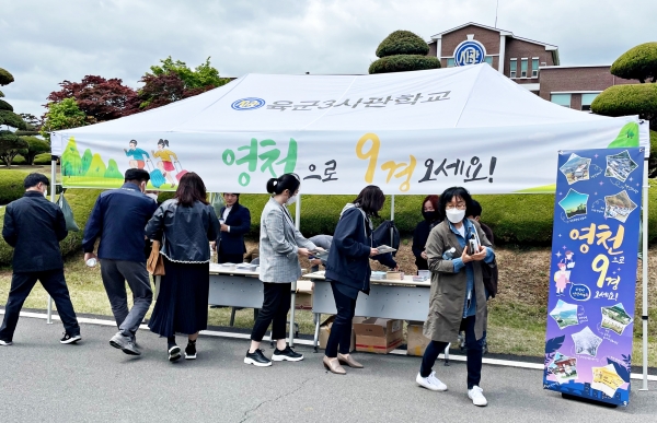 이날 시는 육군3사관학교 내에서 영천 대표 관광지인 영천9경과 영천관광을 알리기 위한 관광안내 책자, 지도와 함께 영천9경 소개 리플릿, 영천9경 도보여행 팸플릿 등을 배포해 방문객의 흥미를 돋웠다.