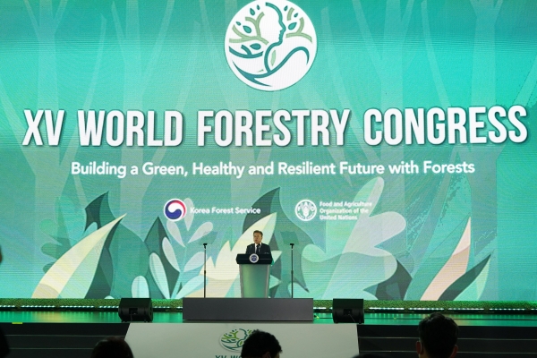최병암 산림청장은 환영사를 통해 “이번 제15차 세계산림총회는 기후 위기 해결을 위한 산림의 역할을 정립하는 한편 코로나 19 이후 인류의 회복과 재건 및 자연생태계 복원을 위한 숲의 중요성에 대해 모두가 공감할 수 있는 중요한 기회가 될 것이다”며 “이번 총회를 통해 전 세계가 실천 가능한 비전을 만들고 산림협력을 강화하는 장을 확대한다면, 숲과 함께 만드는 푸르고 건강한 미래는 꿈이 아닌 현실이 될 것이다”고 말했다.