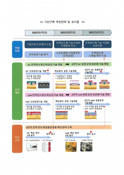 차량용 전력반도체 기반구축 사업은 2022년부터 2024년까지 국비 92.5억원을 포함해 총 132.5억원을 투입해 차량에 사용되는 반도체의 물리적 특성을 개선한 와이드밴드갭 전력반도체 생산을 위한 기술개발, 생산시설 구축 및 유관기업 지원 등을 골자로 하고 있다.