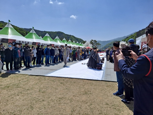 이날 오전 축제장에는 문청함 천년다례원 원장이 100m짜리 천을 펴고 자신이 개발한 아리랑다법을 2명의 어린이와 시연해 신기한 볼거리를 선보였다.