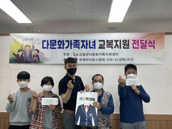 국제라이온스협회 356-E지구는 경상북도 23개 시·군에 거주하는 다문화가족자녀를 대상으로 교복지원사업을 시행하고 있으며 고령군다문화가족지원센터의 추천을 통해 관내 중학교 1학년 2명, 고등학교 1학년 1명 총 3명이 교복지원사업 대상자로 선정되어 이번 교복구입 상품권 전달식을 진행하게 됐다.