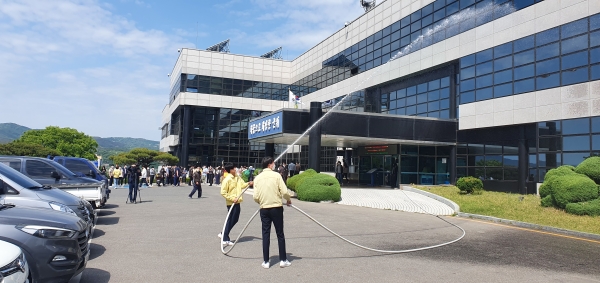 [Q뉴스] 군위군은 지난 11일 2022년도 공공기관 소방안전규정에 따른 자체소방훈련을 군위군청과 생활문화센터, 복지회관 등에서 실시했다.