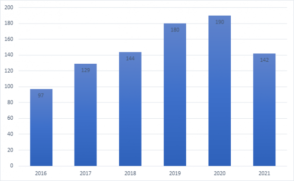 특허청에 따르면, 생분해 플라스틱 관련 특허출원이 최근 5년간 연평균 18% 증가해, 2016년 97건에서 2020년 190건으로 5년 만에 2배 가까이 증가했다.