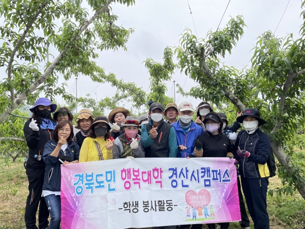 [Q뉴스] 경북도민행복대학 경산시 캠퍼스 학생자치회에서는 지난 13일부터 14일까지 양일간에 걸쳐 도민대학 학생 40명이 참여한 가운데 농촌봉사활동을 했다.