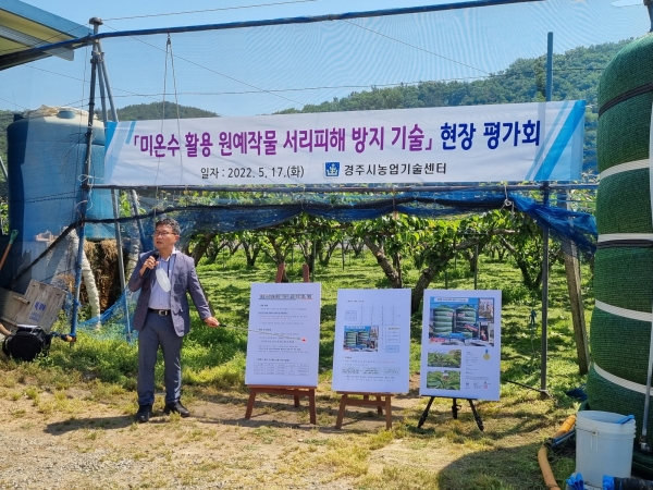 이번 평가회는 국립원예특작과학원을 비롯한 타지역 농업기술센터 직원 등 60여명이 참석한 가운데, 경주시가 자체 개발한 봄철 서리피해 예방기술 시연을 위해 마련됐다.