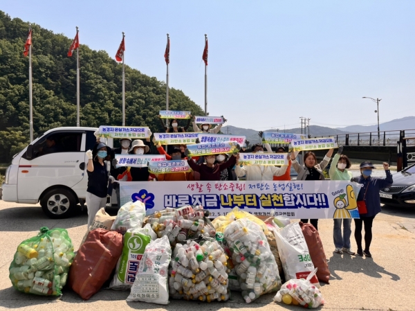 이번 행사에서는 자발적인 실천운동 다짐과 분위기 조성을 위해 각 읍면 회원들의 농약빈병 모으기 운동을 추진했고 수거된 재활용품을 가천면 소재의 한국환경공단에 전달하는 것을 시작으로 농업부문 온실가스 감축 참여를 위한 첫걸음을 내딛었다.