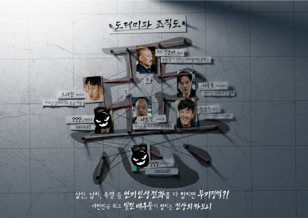 공개된 조직도는 등장만으로 범죄 액션 영화 한 편이 그려지는 대한민국 대표 빌런 배우 라인업으로 시선을 강탈한다.