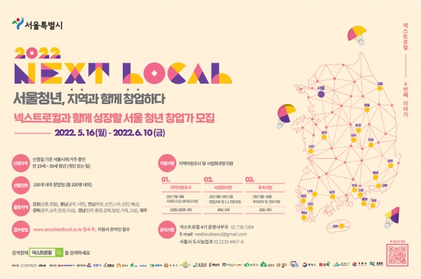 넥스트로컬사업은 서울시가 전국 지방자치단체와 협력을 바탕으로 서울청년의 지역자원 발굴과 창업 모델화 과정을 지원하는 사업으로 2022년에는 전국 20개 지자체가 참여한다.