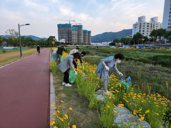 이날 남천둔치 산책로 일대를 순찰하며 담배꽁초, 일회용 컵, 빈 병 등 각종 쓰레기를 수거해 깨끗한 환경을 조성하는 데 힘썼다.