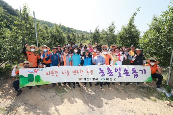 특히 23일 보문면 사과 적과 일손돕기 현장에는 재무과·농정과·축산과·보문면 직원을 비롯한 강성조 경상북도 행정부지사, 도청 예천향우회, 예천소방서 등 50여명이 참여해 일손을 보탰다.