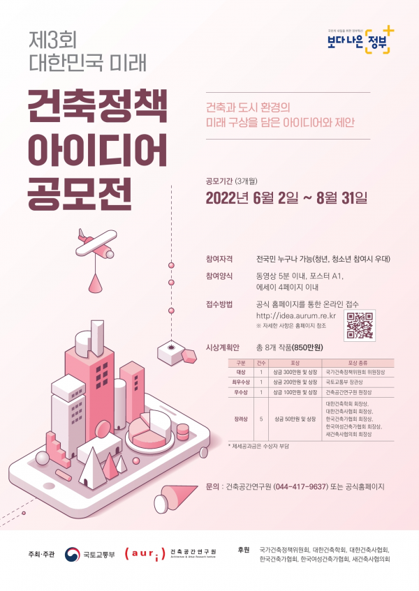공모전과 관련한 자세한 사항은 공모전 공식 누리집인 ‘건축정책 아이디어 플랫폼’에서 확인할 수 있다.
