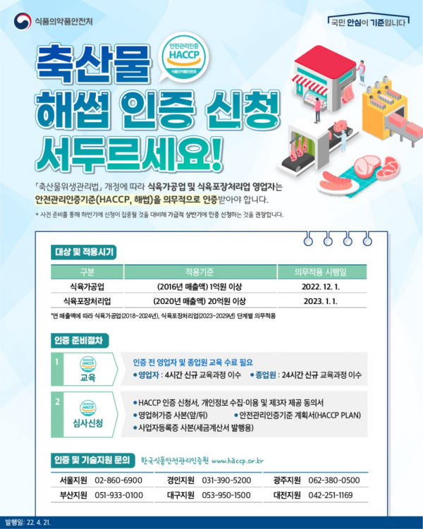식약처는 앞으로도 분쇄가공육제품 등을 제조하는 식육가공업체에 대해 단계적으로 축산물 안전관리인증기준 의무적용을 추진하고 지자체와 함께 점검을 실시하는 등 안전한 축산물이 유통·소비될 수 있도록 최선을 다한다.