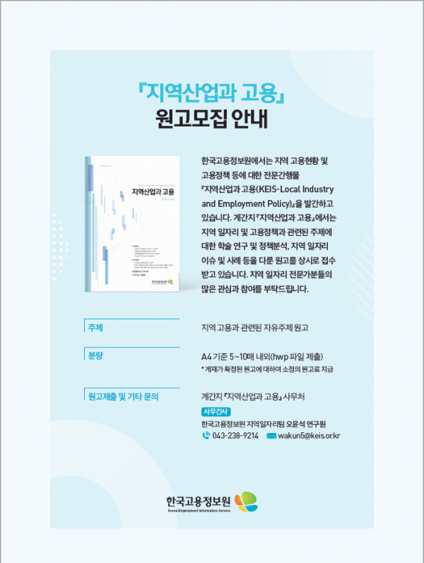[Q뉴스] 한국고용정보원은 30일 계간지 ‘지역산업과 고용’여름호를 발간했다.