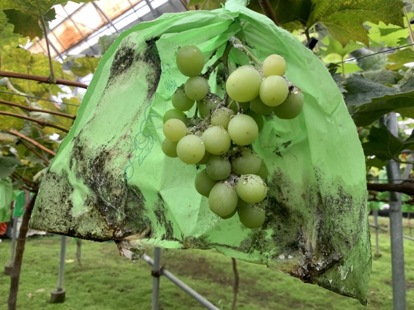 약제방제 후에는 반드시 봉지를 씌워 과실 속으로 약충이 들어가지 못하게 해야 고품질 포도를 생산할 수 있다.