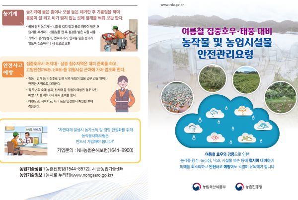 정 장관은 태풍 피해 예방을 위해 각 기관에서 총력을 기울여 줄 것을 지시하는 한편 농업인들께 인명과 재산피해가 없도록 시설 및 농작물 피해 예방 요령과 호우대비 국민 행동요령을 사전에 숙지하고 준수해 달라고 당부했다.