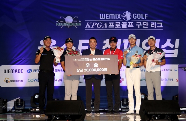 예선전에서 2위를 기록한 열정팀과 결승전에서 맞붙은 도전팀은 전반 9개 홀에서 3타, 후반 9개 홀에서 1타를 줄여 4언더파 68타를 적어내 3언더파 69타를 작성한 열정팀을 1타 차로 꺾고 본 대회 초대 챔피언에 올랐다.