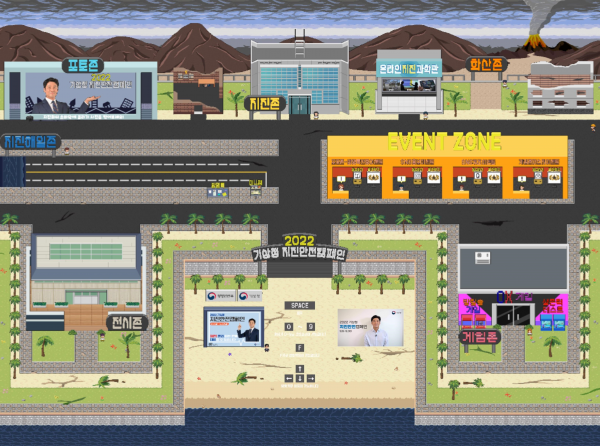 행사구역에는 홍보 운동 기간 동안 방명록과 사진 촬영 공간을 활용한 확장 가상 세계 방문 인증 사회 관계망 서비스를 통한 소문내기 놀이 완성 지진정보서비스 문제 풀기 등 4개의 행사가 마련되어 있으며 추첨을 통해 소정의 상품도 지급된다.