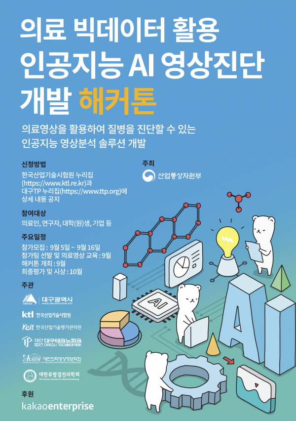 이번 해커톤 대회 참가자 모집은 9.5.부터 약 2주간 진행되며 KTL과 대구TP 누리집을 통해 의료영상 인공지능 영상분석 솔루션 개발에 관심 있는 기업과 개인 누구나 신청할 수 있다.