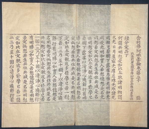 사리불아비담론은 소승에서 말한 모든 법의 명의를 해석한 책으로 국내에 잔존하고 있는 재조대장경의 인본들은 인출 시기가 조선 말기에서 일제강점기 시기에 인출한 것과 1960년대에 인출한 것이 대부분이다.