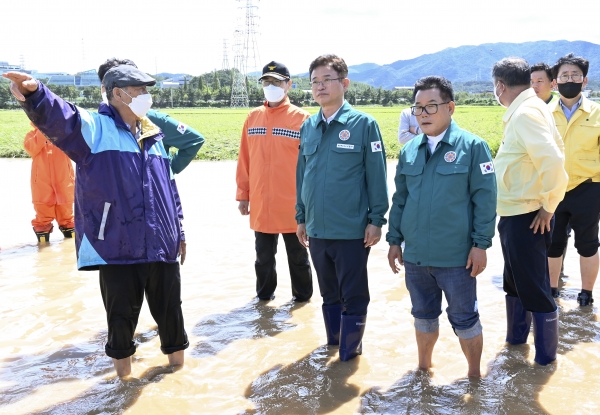이어 토사가 무너지며 붕괴 위험에 노출된 경주 왕신저수지를 찾아 피해상황과 복구 대책 등에 대해 보고를 받고 “인력, 장비 등 가용자원 총동원해 응급복구를 조속히 추진하라”고 지시했다.