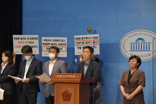 [Q뉴스] 국회 교육위원회 소속인 강득구 의원과 수학교사모임연합은 8일 오전 10시 20분, 국회 소통관에서 ‘2022 개정 수학과 교육과정 관련 설문결과 발표 기자회견’을 열어 전국 수학교사 3,554명의 설문조사 결과를 발표하는 기자회견을 가졌다.