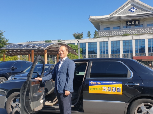 자치경찰제의 성패를 결정짓는 중대한 요소 중 하나가 도민의 참여와 소통이라는 점을 고려할 때 자치경찰제에 대한 관심도 제고를 위해 이순동 경북자치경찰위원장이 솔선수범해 개인 승용차에 홍보 자석스티커를 부착해 홍보에 나섰다.