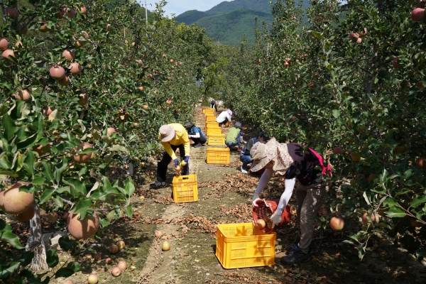 도움을 받은 고령의 농업인 A씨는 “낙과가 많아 혼자서 작업하기 막막했는데 이렇게 도와줘 감사하다”며 고마움을 전했다.