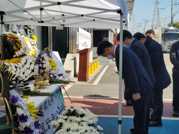 [Q뉴스] 금일 국회 환경노동위원회 소속 더불어민주당 국회의원들은 지난 10월 15일 SPC 근로자 사망사고가 발생한 경기 평택시 소재 SPC로지스틱스 공장에 방문해 현장점검을 실시했다.