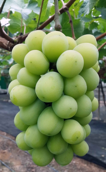포도 샤인머스켓 품종은 과실 송이의 크기가 1kg 이상 되고 포도알도 지나치게 큰 것은 속이 비고 당도가 떨어지므로 송이 무게가 약 500g ~ 700g정도 크기가 맛이 있다.