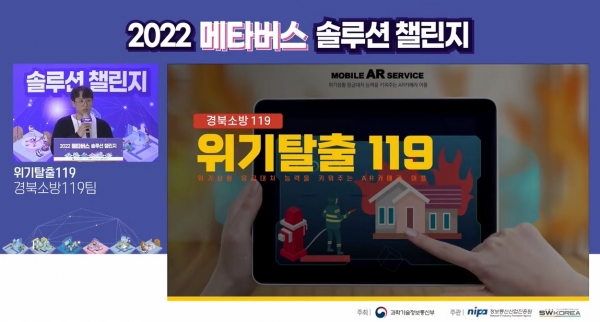 [Q뉴스] 경북소방본부는 지난 3일 정보통신산업진흥원 주관으로 과학기술정보통신부가 주최한 ‘2022 메타버스 솔루션 챌린지' 결선에 진출해 최종 6위의 성적을 거뒀다고 밝혔다.