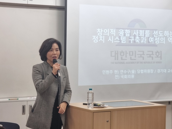 [Q뉴스] 민현주 국민의힘 인천광역시 연수구 당협위원장은 지난 11월 9일 “옥련여자고등학교 2022 가을 인문, 사회, 예술 명사 초청 강의”에 초대되어 ‘창의적 융합 사회를 선도하는 정치 시스템 구축과 여성의 역할’이라는 주제로 특강을 진행했다.