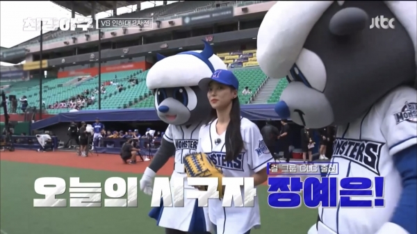 장예은이 지난 14일 오후 방송된 JTBC ‘최강야구’에 특별 시구자로 등장했다.