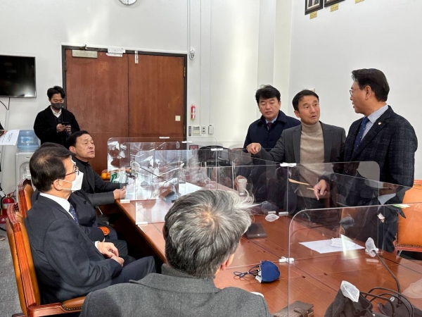 한병도 전북도당위원장은 1일 행안위 전체회의 현장을 찾아 이채익 국회 행정안전위원장과 이만희·김교흥 행안위 간사 등 여·야 행안위원들을 만나 법안 처리를 호소했다.