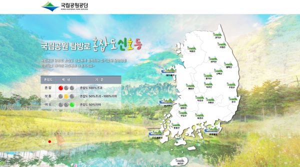 송형근 국립공원공단 이사장은 “탐방객 밀집으로 인한 안전사고를 사전에 예방하고 쾌적한 탐방환경을 조성하기 위해 이번 혼잡도 안내 확대를 준비했다”며 “국립공원 방문 전에 혼잡도를 미리 확인하고 탐방로를 선택해 탐방하시길 바란다”고 말했다.