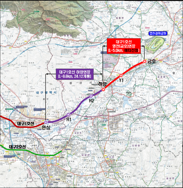 이 사업은 대구도시철도1호선 경산 하양역에서 영천 금호읍까지 5.0km 구간에 총사업비 2052억원을 투입해 도시철도를 연장을 내용으로 하고 있다.