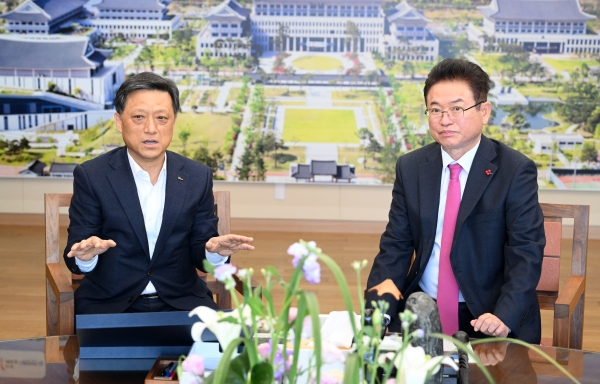 [Q뉴스] 경상북도는 29일 오전 김학동 포스코 부회장 등 4명은 도청을 방문해 이철우 도지사와 환담을 나눴다고 전했다.