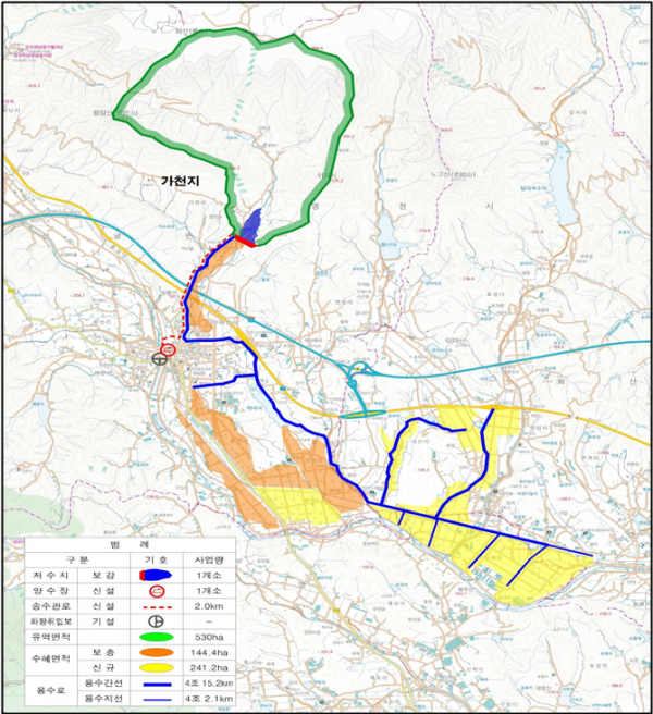 올해 기본조사를 위한 예산 3억원이 반영되어 사업 착수를 위한 준비 작업이 이뤄질 예정이며 향후 본사업이 착공되면 지역간 용수공급 불균형과 가뭄을 해소하는 데 큰 역할을 할 것으로 기대된다.