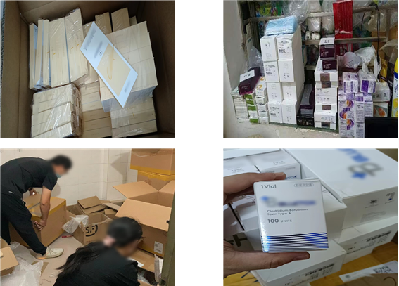 온·오프라인 조사를 통해, 위조 한국산 미용 의약품을 대량 유통하는 것으로 의심되는 도매상 6개소를 적발했다.