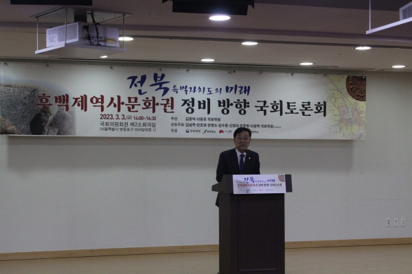김윤덕 의원은 인사말을 통해 “전북특별자치도와 전주의 미래 먹거리는 후백제 역사를 복원하는 것에서 시작한다”고 강조하면서 “공동주최해주신 모든 의원님께 감사 인사를 드리며 이번 토론회를 기점으로 후백제 역사가 많은 국민에게 알려지고 올바른 역사관을 정립할 수 있도록 후백제문화권 지방정부협의회와 지자체 간의 긴밀한 협력을 이끌어내겠다”고 말했다.