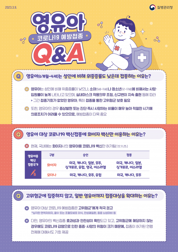 추진단은, “영유아 접종의 효과성과 안전성이 확인되고 있는 만큼, 면역저하나 기저질환을 보유한 영유아는, 내원 중인 의료기관 주치의와 상의해 접종에 참여해주시기 바란다”고 밝혔다.
