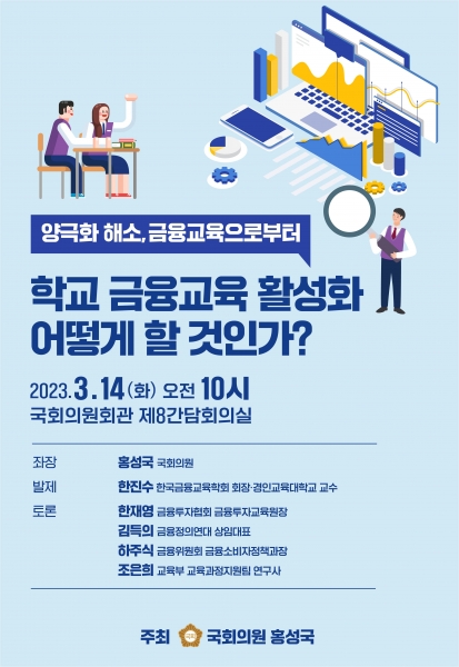 [Q뉴스] 더불어민주당 홍성국 의원이 주최하는 ‘학교 금융교육 활성화 어떻게 할 것인가?’ 토론회가 3월 14일 10시 국회의원회관 제8간담회의실에서 개최된다.