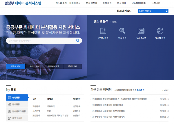 행정안전부는 지난해 9월부터 추진해 온 ‘범정부 데이터 분석시스템’ 개발 1단계 사업을 마치고 3월 17일부터 전 중앙부처와 자치단체, 공공기관을 대상으로 서비스를 시행한다고 밝혔다.