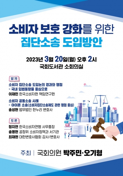 [Q뉴스] 소비자 보호를 위해 집단소송 필요성에 대해 논의하는 토론회가 2023년 3월 20일 오후 2시 국회도서관 소회의실에서 열린다.