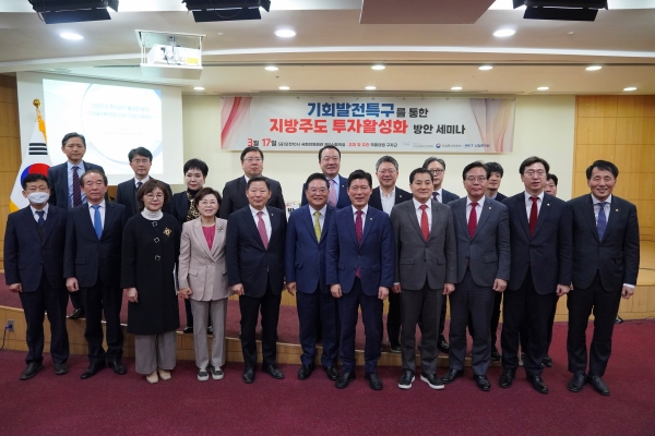 허문구 산업연구원 국가균형발전연구센터장이 발제를 맡은 이번 세미나는 오정근 국가균형발전위원회 지역공약특위 위원장이 좌장을 맡았고 김재환 기획재정부 정책조정기획관, 박종원 산업통상자원부 지역경제정책관, 박성수 경상북도 지방시대정책국장, 박세훈 한국법제연구원 연구위원, 강석구 대한상공회의소 조사본부장이 토론자로 이름을 올렸다.