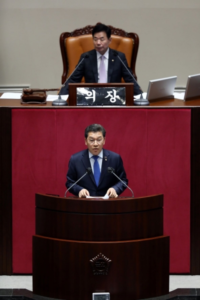 양곡관리법 본회의 찬성토론을 진행한 신정훈 의원은 “민주당은 윤석열 정부와 국민의힘의 과장된 우려와 의도된 왜곡에 동의하지 않는다.