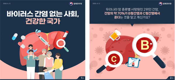 우리나라 암 종류별 사망원인 2위인 간암의 원인으로 B형간염과 C형간염이 약 70%를 차지하는 것으로 알려져 있으며 이러한 B형간염과 C형간염으로 인한 간질환 사망률을 2027년까지 2015년 대비 40% 감소시키기 위해 질병관리청은 간염의 예방-조기진단-치료에 이르는 전주기 간염 관리체계 구축 계획을 담은 ‘제1차 바이러스 간염 관리 기본계획’을 최근 수립했다.