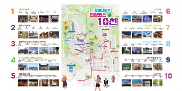 문체부는 청와대 권역의 K-관광 랜드마크 선포와 함께, 청와대 인근의 다양한 역사·문화 관광자원을 바탕으로 K-푸드, K-컬처, K-클라이밍, 전통문화 등을 주제로 10개의 테마별 도보 관광코스를 소개했다.