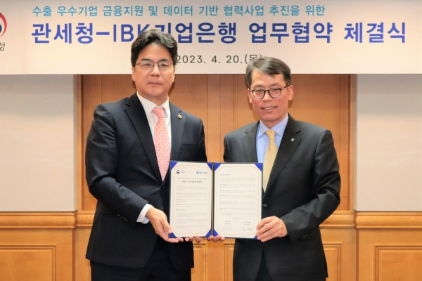 [Q뉴스] 관세청과 IBK기업은행은 20일 서울 은행연합회관에서 ‘수출 우수기업의 금융지원 및 데이터 기반 협력사업 추진을 위한 업무협약’을 체결했다.