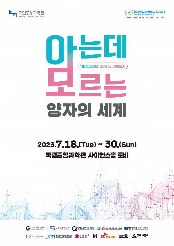 [Q뉴스] 국립중앙과학관은 ‘퀀텀 코리아 2023 후속전시회: 아는데 모르는 양자의 세계’를 7월 18일부터 30일까지 국립중앙과학관 사이언스홀 로비에서 개최한다.